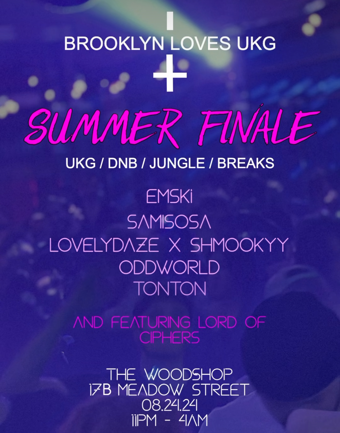 At the summer finale of Brooklyn Loves UKG you’ll find UKG, DnB, jungle, and breaks. Look out for original tracks from multi-hyphenate talents OddWOrld and samisosa.