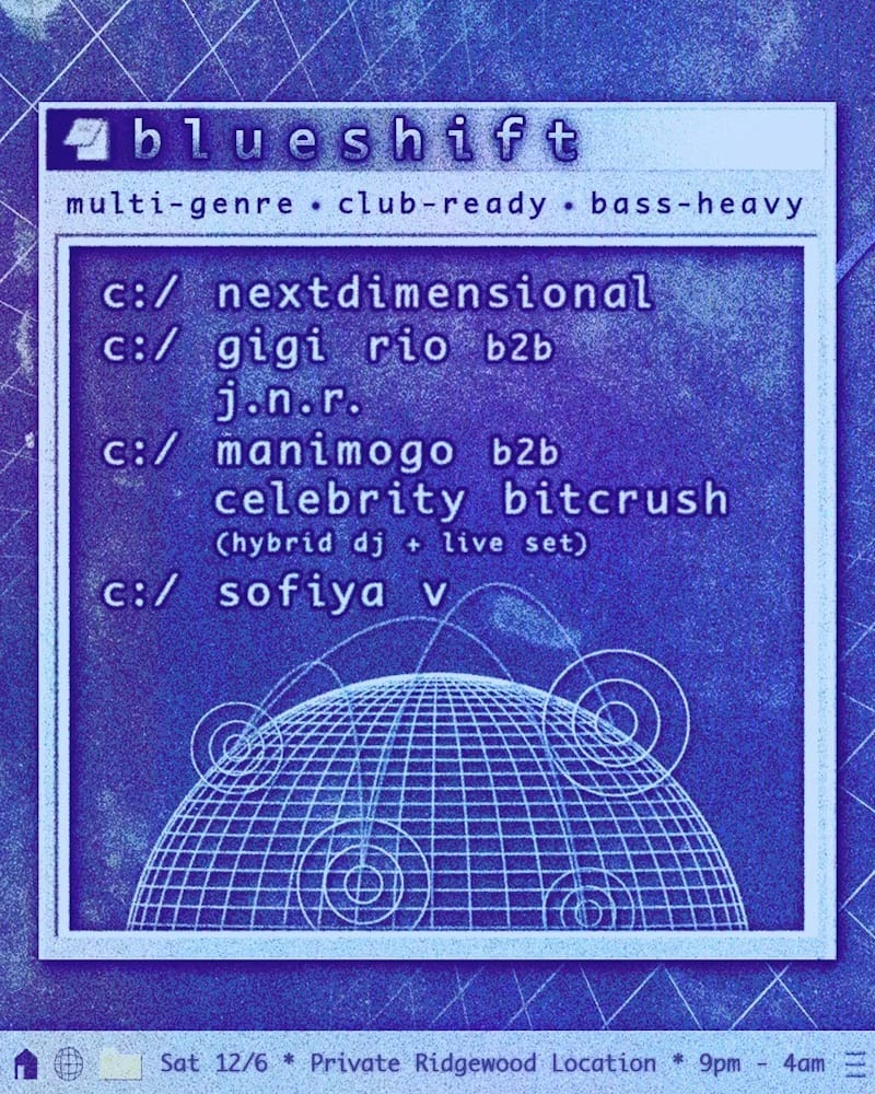 Unravel and OnlyFemmes present blueshift: a genre-blending night of bass-heavy & club-ready sounds. The night is headlined by nextdimensional, a DJ, producer, and label head known for her global tours and innovative sonic vision. The event also showcases NYC underground leaders Gigi Rio and J.N.R . in their first-ever b2b set. Lepetitbox co-creator MANIMOGO and Celebrity Bitcrush will deliver a hybrid DJ/live performance. Rising talent Sofia V rounds out the bill with hypnotic, dark selections. Expect this lineup of forward-thinking artists to push the underground to new heights.